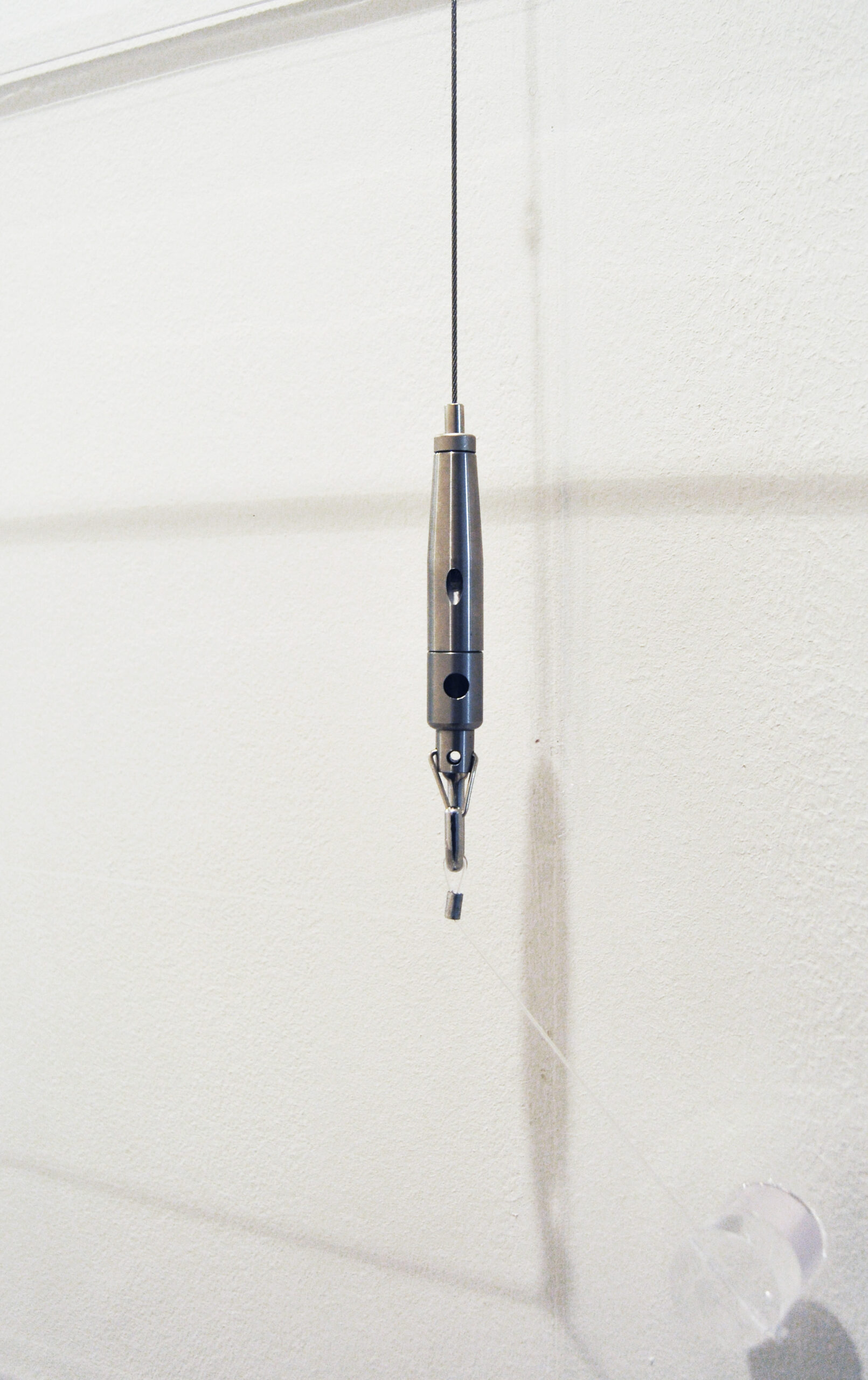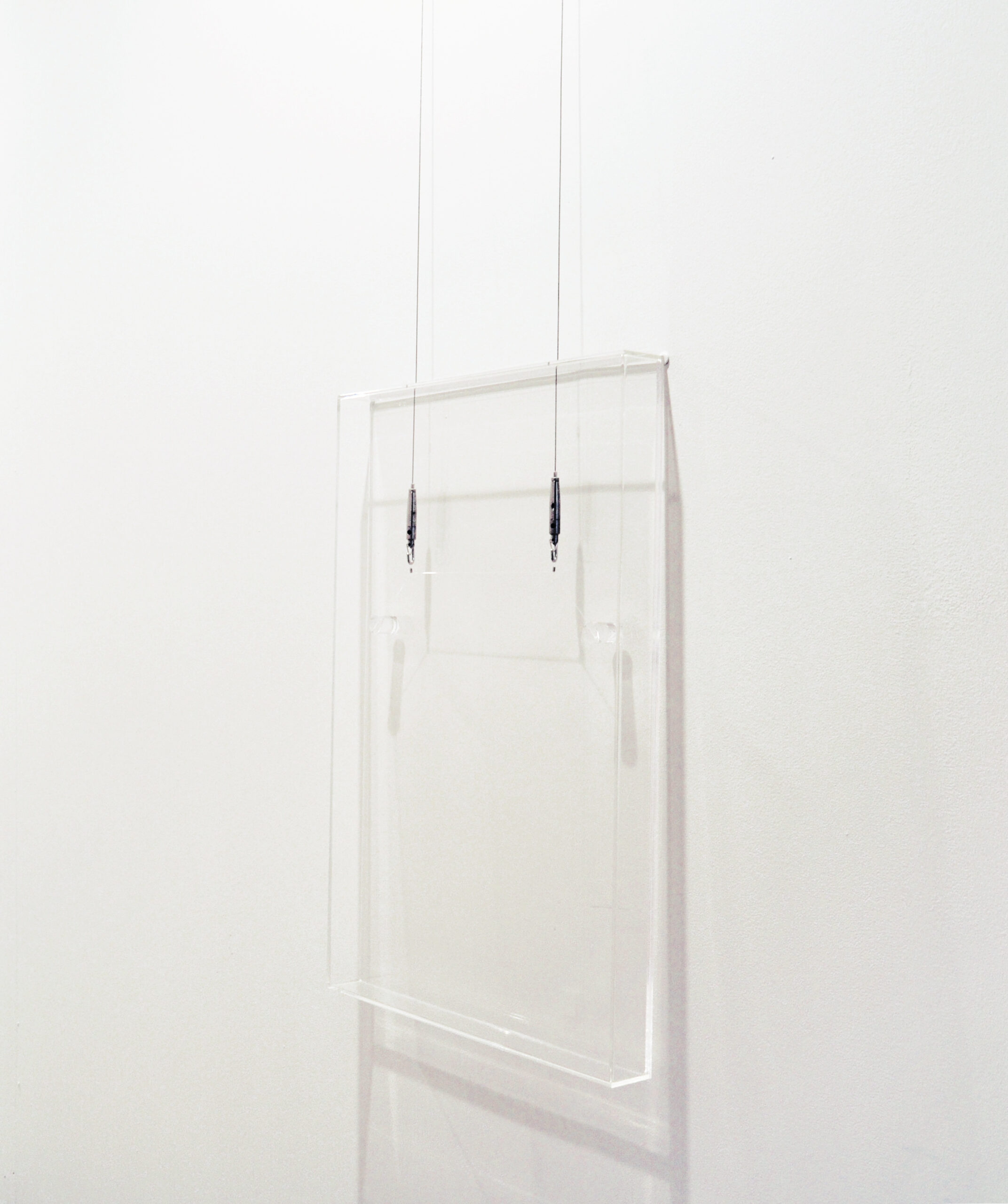 “Ashl” hook (Arakawa Hanging Systems) in stainless steel, acrylic glass, “Kristall-Klar” adhesive tape (Tesa), stainless steel, tempered steel, felt pad